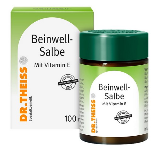 Verwöhnen Sie Ihre Haut mit der wohltuenden Dr. Theiss Beinwell-Salbe. Die Kombination aus wertvollen Lipiden, Beinwelltinktur und Vitamin E pflegt die Haut und unterstützt die Regeneration der Beine und des strapazierten Rückens.