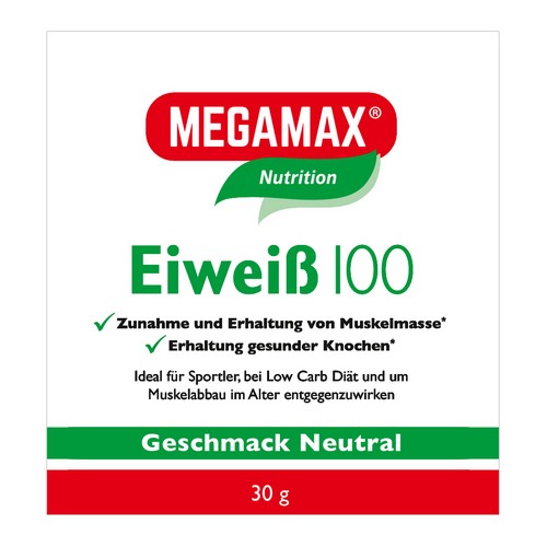 Die in MEGAMAX Eiweiß 100 enthaltenen Proteine unterstützen die Zunahme und Erhaltung von Muskelmasse und die Erhaltung normaler Knochen. MEGAMAX Eiweiß 100 eignet sich hervorragend zur Anreicherung der täglichen Ernährung mit Eiweiß. z.B. für Sportler oder im Rahmen eines Diätplans.