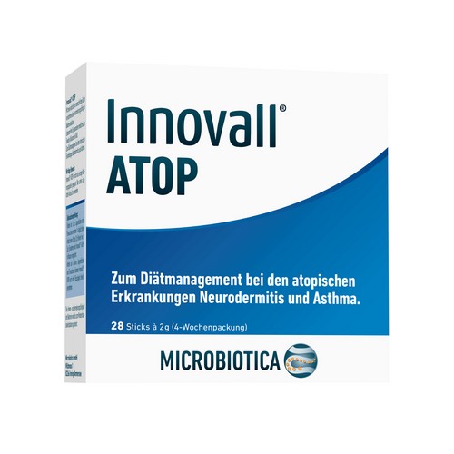 Innovall® ATOP enthält zwei spezifische, im menschlichen Darm vermehrungsfähige Bakterienstämme zum Ausgleich der Dysbalance des Mikrobioms bei den atopischen Erkrankungen Neurodermitis und Asthma. Die Mengenverhältnisse und Dosierung der speziell für diesen besonderen Anwendungsbereich ausgewählten Bakterienstämme sind so aufeinander abgestimmt, dass sie das gastrointestinale Mikrobiom und damit auch die Symptome bei Neurodermitis und Asthma positiv beeinflussen. Dies ist durch klinische Daten belegt.