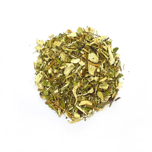 Fenchelfrüchte bitter, Wegwartkraut, Bärentraubenblätter, Eibischwurzel, Goldrutenkraut, Brennesselwurzel, Wasserhanfwurzel rot, Hortensienwurzel, Brennesselwurzel, Katzenkrallen, Majoran,