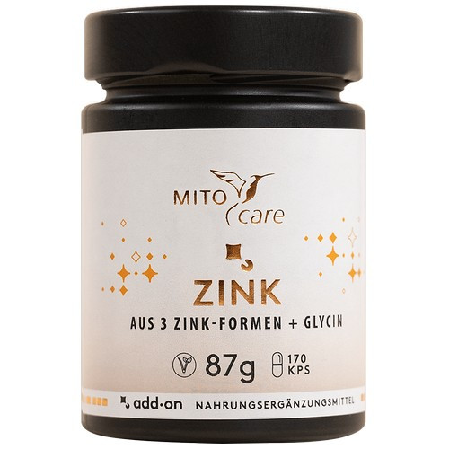 enthält Zink in den drei verschiedenen Formen Zinkgluconat, Zinkpicolinat und Zinkbisglycinat, ergänzt durch die Aminosäure Glycin. Zink ist im Organismus essenziell und fungiert als Cofaktor in über 200 enzymatischen Prozessen. Abgerundet wird das Produkt mit der Aminosäure Glycin, welche im Körper rund 25% der Kollagenmasse ausmacht.