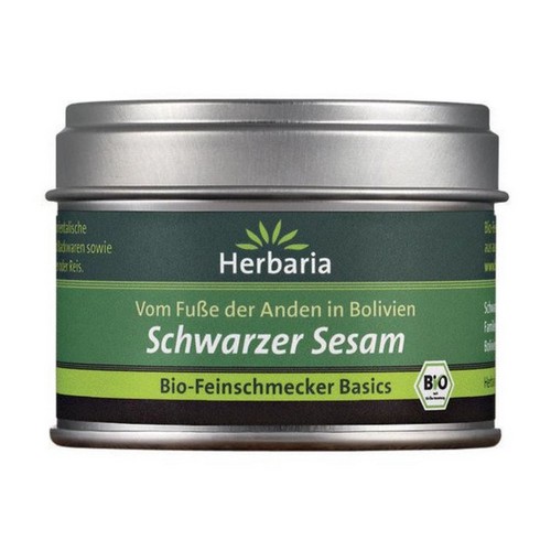 Herbaria Schwarzer Sesam stammt aus kontrolliert biologischem Anbau vom Fuße der Anden in Bolivien. Eine aus ca. 490 Farmen bestehende Kleinbauernkooperative baut den schwarzen Sesam (Sesamum indicum) an. Durch die Kooperative ist eine faire Bezahlung der Anbauer gewährleistet. Die Ernte erfolgt von Hand im Zeitraum zwischen Januar und April, danach wird der Sesam auf den Feldern getrocknet und ebenfalls von Hand weiterverarbeitet. Der schwarze Sesam schmeckt nussig aromatisch und ist etwas würziger als der bei uns bekanntere weiße Sesam. Er wird vorwiegend in der asiatischen und orientalischen Küche eingesetzt z.B. in Marinaden, Backwaren sowie Gemüsegerichten und Reis.
